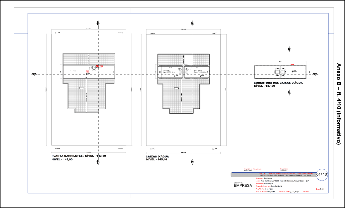 Fl 4/10 (informativo) – Projeto de Hidrantes (Barriletes, Caixa D’água e Cobertura da Caixa D’água)