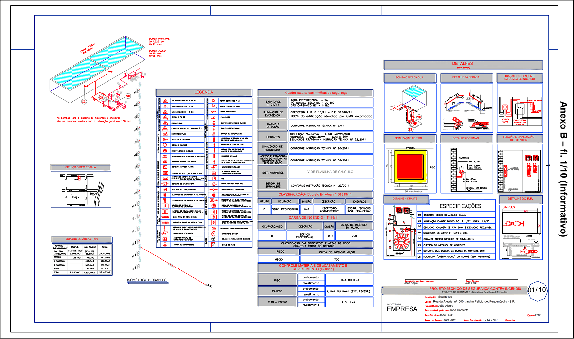 Fl 1/10 (informativo) – Projeto de Hidrantes (Isométrico, Detalhes e Informações)