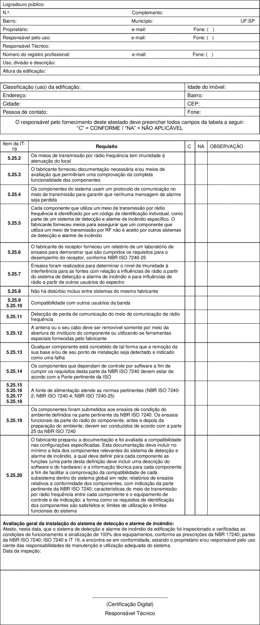 Relatório e comissionamento e de inspeção periódica do sistema de detecção e alarme de incêndio wireless