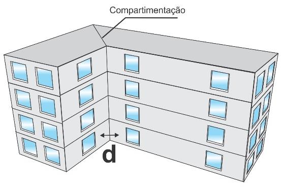 5.2.7 As aberturas situadas em fachadas ortogonais, pertencentes a áreas de compartimentação horizontal distintas do edifício devem estar distanciadas na projeção horizontal 4 m, de forma a evitar a propagação do incêndio por radiação térmica (Figura 3).