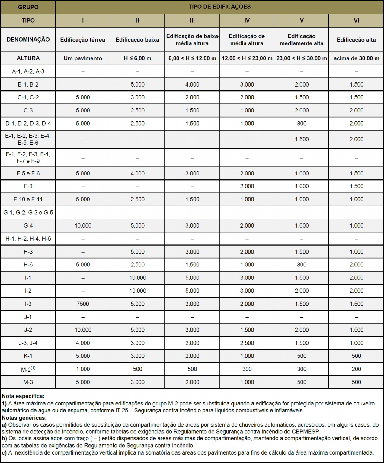 5.1.1 Sempre que houver exigência de compartimentação horizontal (de áreas) deve-se restringir as áreas dos compartimentos, de acordo com o Anexo B “Tabela de área máxima de compartimentação”.