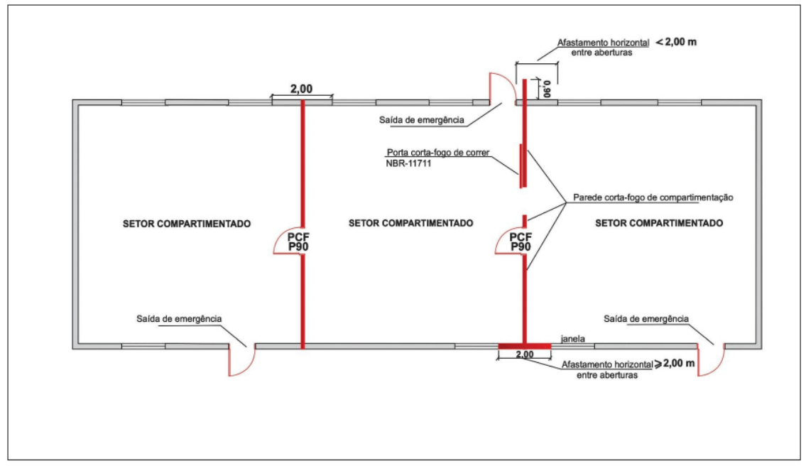 1.1 Estabelecer os parâmetros de emprego e dimensionamento da compartimentação horizontal e vertical nas edificações e áreas de risco, de modo a impedir a propagação do incêndio para outros ambientes.
