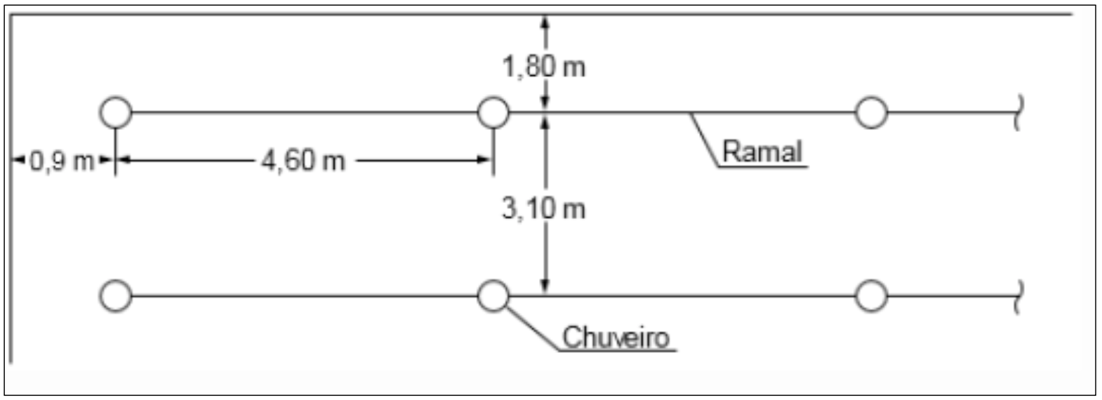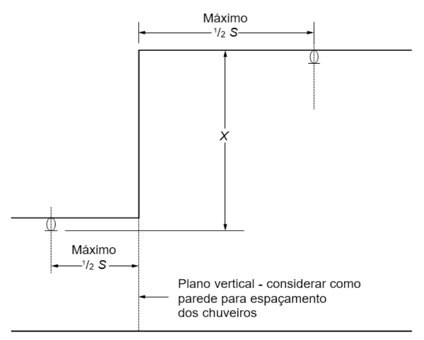 7.1 O espaçamento dos chuveiros automáticos não pode exceder a maior área de cobertura permitida por chuveiro.