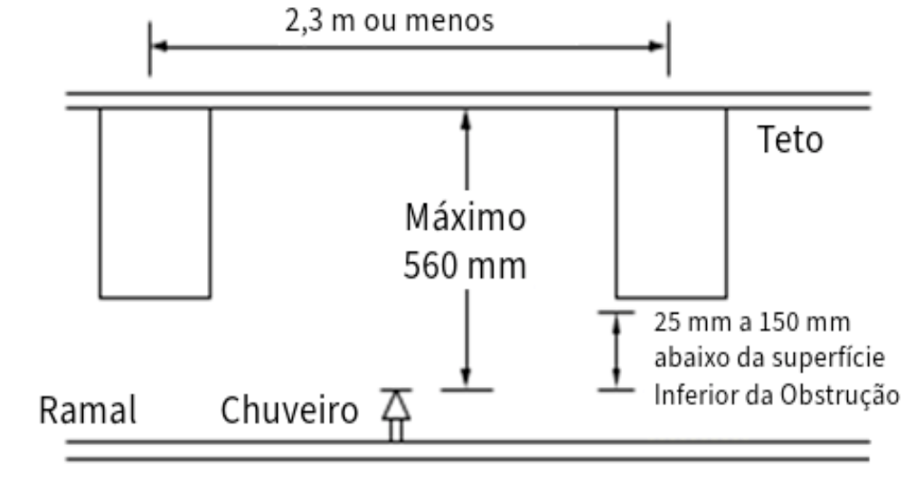 2.6 Teto combustível obstruído: tetos cujas vigas, nervuras ou outros elementos impeçam o fluxo de calor e a distribuição de água, afetando fisicamente a capacidade de controle ou supressão de incêndio pelos chuveiros automáticos.