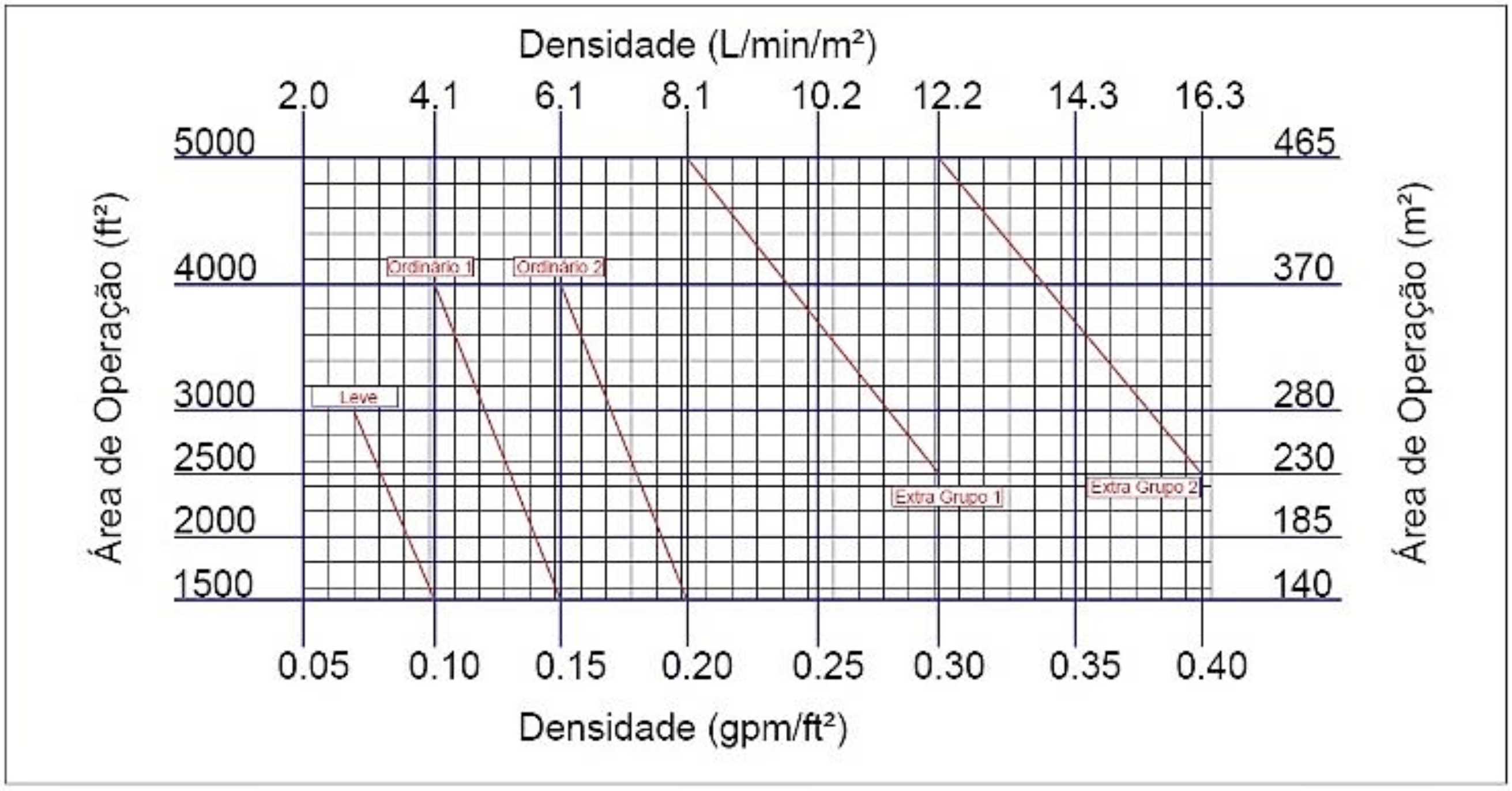 11.10.1 Em áreas de risco extra ou extraordinário, a máxima pressão de operação de qualquer chuveiro automático deve ser 1210 kPa (123,5 mca).