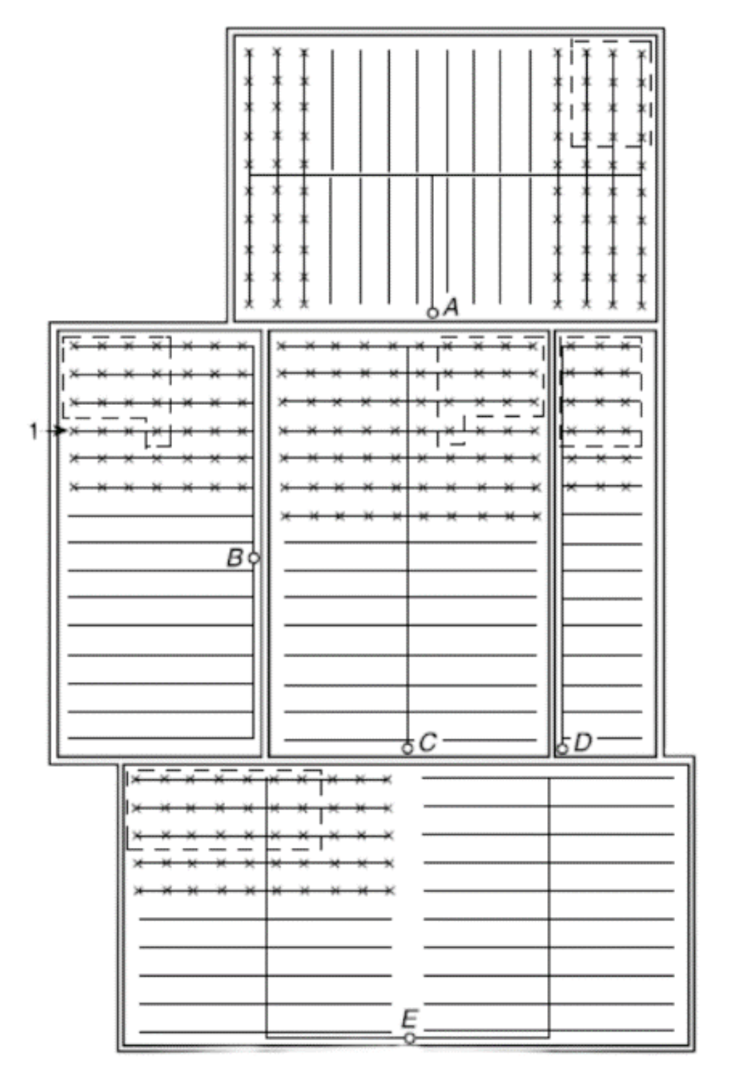 Passo 12: Se a área de cálculo se estender até o outro lado da sub geral, os Passos 6 até 10 são repetidos para o lado oposto. Os ramais que cruzam deverão ser balanceados com a mais alta pressão de demanda;
