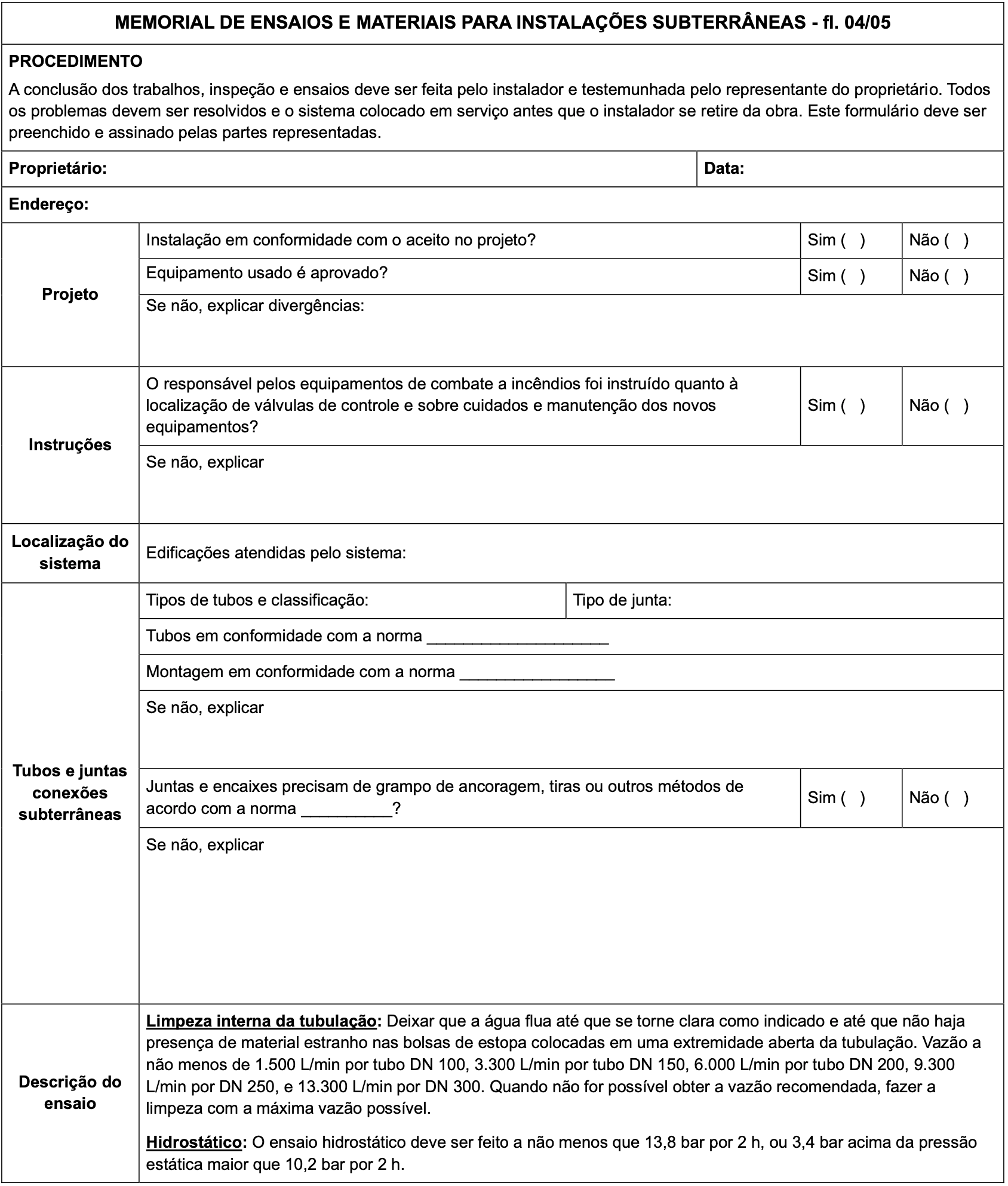 5.11 Em sistemas de dilúvio não é necessário instalar conexão de teste.
