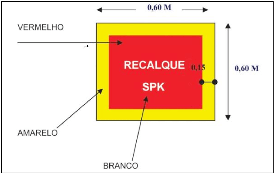 5.12.2 O registro de recalque para chuveiros automáticos deve conter sinalização e indicação claras, de forma a ser diferenciado do recalque do sistema de hidrantes, de acordo com o Anexo D desta IT.